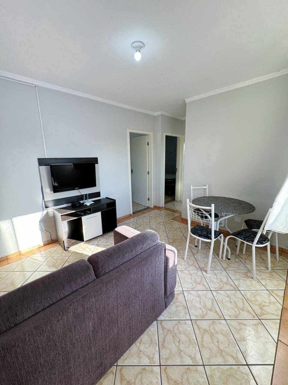 Apartamentos mobiliados com dois quartos, banheiro, sala, cozinha completa e área de serviço. Equipados com Wi‑Fi, TV a cabo.